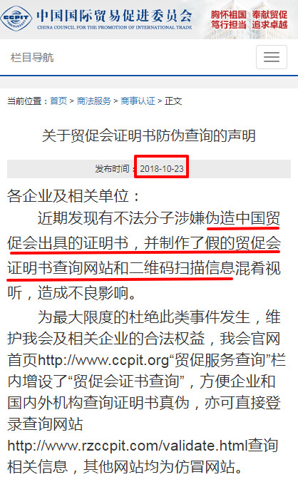 造假猖獗到什么程度呢?不僅證書是假的,它還能制作假的貿(mào)促會(huì)證明書查詢網(wǎng)站和二維碼掃描信息。!